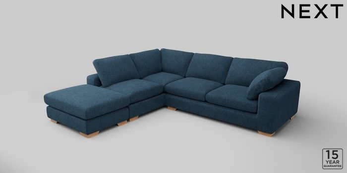 7.2.10 N Premium The Snuggle Grand Large Open End Corner Chaise - Left Hand Cotswold Chenille Dark Blue Large Square Angle - Light | Made Click here to use our website with more accessibility support, for example screen readers