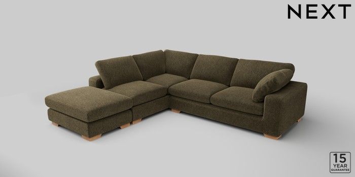 7.2.10 N Premium The Snuggle Grand Large Open End Corner Chaise - Left Hand Cotswold Chenille Dark Green Large Square Angle - Light | Made Click here to use our website with more accessibility support, for example screen readers