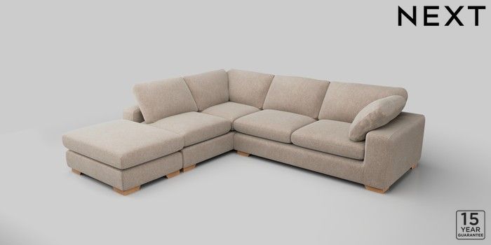 7.2.10 N Premium The Snuggle Grand Large Open End Corner Chaise - Left Hand Cotswold Chenille Light Natural Large Square Angle - Light | Made Click here to use our website with more accessibility support, for example screen readers