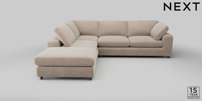 7.2.10 N Premium The Snuggle Grand Large Open End Corner Chaise - Left Hand Cotswold Chenille Light Natural Wooden Glide - Mid | Made Click here to use our website with more accessibility support, for example screen readers