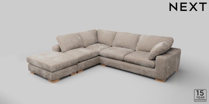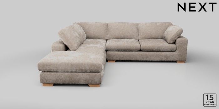7.2.10 N Premium The Snuggle Grand Large Open End Corner Chaise - Left Hand Distressed Velour Mid Natural Large Square Angle - Light | Made Click here to use our website with more accessibility support, for example screen readers