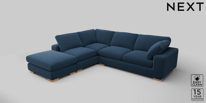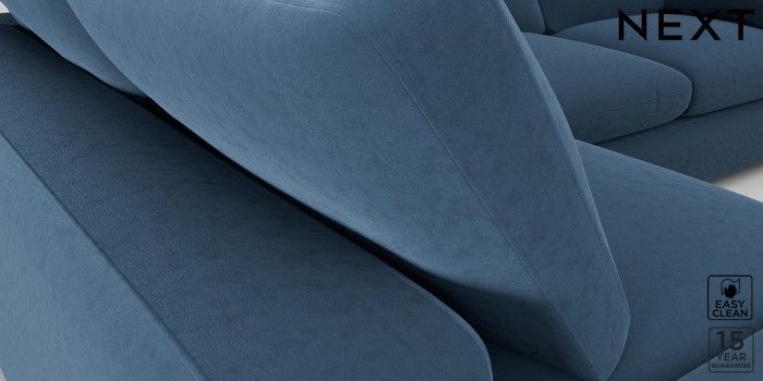 7.2.10 N Premium The Snuggle Grand Large Open End Corner Chaise - Left Hand Plush Velvet Easy Clean Airforce Blue Large Square Angle - Light | Made Click here to use our website with more accessibility support, for example screen readers