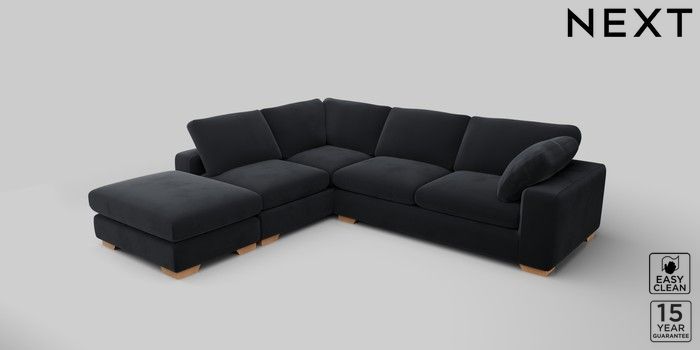 7.2.10 N Premium The Snuggle Grand Large Open End Corner Chaise - Left Hand Plush Velvet Easy Clean Charcoal Grey Large Square Angle - Light | Made Click here to use our website with more accessibility support, for example screen readers