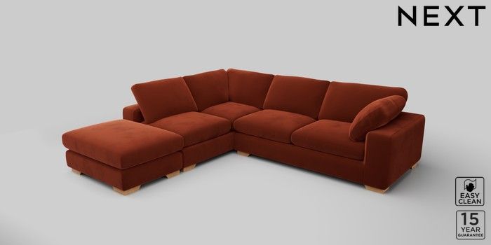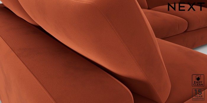 7.2.10 N Premium The Snuggle Grand Large Open End Corner Chaise - Left Hand Plush Velvet Easy Clean Ginger Orange Large Square Angle - Light | Made Click here to use our website with more accessibility support, for example screen readers