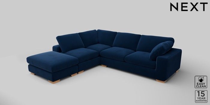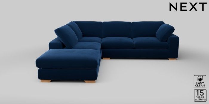 7.2.10 N Premium The Snuggle Grand Large Open End Corner Chaise - Left Hand Plush Velvet Easy Clean Navy Blue Large Square Angle - Light | Made Click here to use our website with more accessibility support, for example screen readers