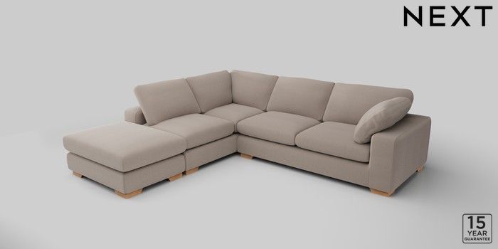7.2.10 N Premium The Snuggle Grand Large Open End Corner Chaise - Left Hand Relaxed Linen Look Mid Natural Large Square Angle - Light | Made Click here to use our website with more accessibility support, for example screen readers