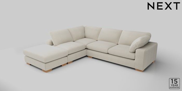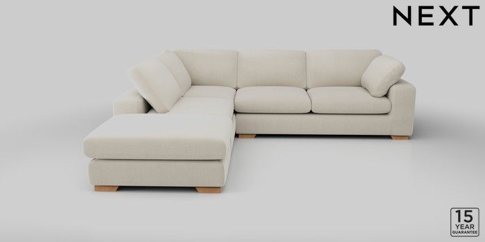 7.2.10 N Premium The Snuggle Grand Large Open End Corner Chaise - Left Hand Relaxed Linen Look Oyster Large Square Angle - Light | Made Click here to use our website with more accessibility support, for example screen readers
