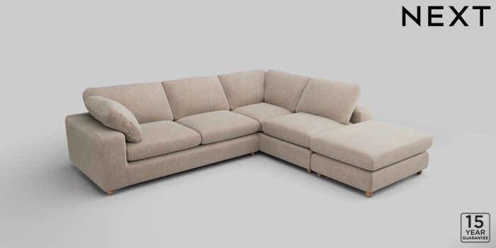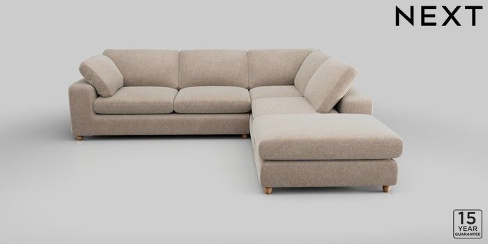 7.2.10 N Premium The Snuggle Grand Large Open End Corner Chaise - Right Hand Cotswold Chenille Light Natural Wooden Glide - Light | Made Click here to use our website with more accessibility support, for example screen readers