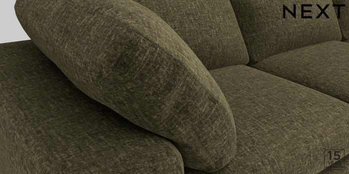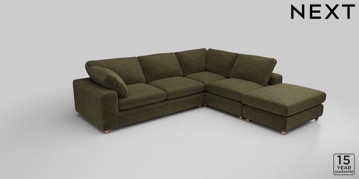7.2.10 N Premium The Snuggle Grand Large Open End Corner Chaise - Right Hand Plush Chenille Moss Green Wooden Glide - Light | Made Click here to use our website with more accessibility support, for example screen readers