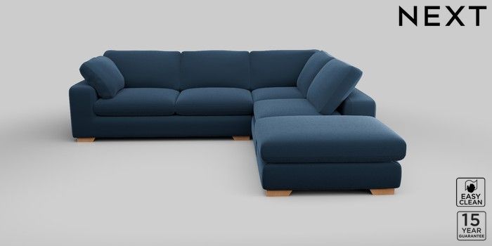 7.2.10 N Premium The Snuggle Grand Large Open End Corner Chaise - Right Hand Plush Velvet Easy Clean Airforce Blue Large Square Angle - Light | Made Click here to use our website with more accessibility support, for example screen readers