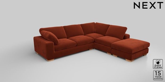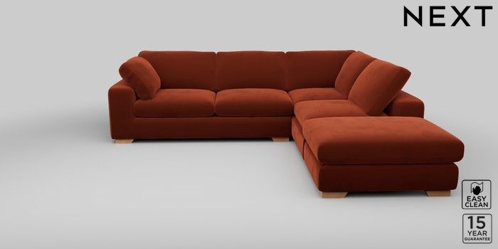 7.2.10 N Premium The Snuggle Grand Large Open End Corner Chaise - Right Hand Plush Velvet Easy Clean Ginger Orange Large Square Angle - Light | Made Click here to use our website with more accessibility support, for example screen readers