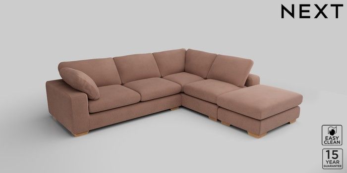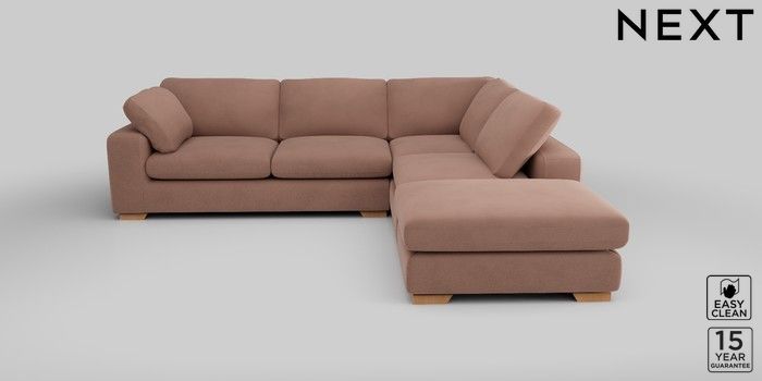 7.2.10 N Premium The Snuggle Grand Large Open End Corner Chaise - Right Hand Plush Velvet Easy Clean Mid Natural Large Square Angle - Light | Made Click here to use our website with more accessibility support, for example screen readers