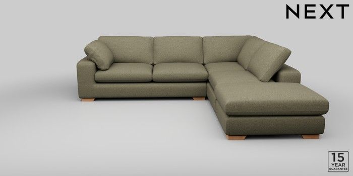 7.2.10 N Premium The Snuggle Grand Large Open End Corner Chaise - Right Hand Tweedy Chenille Mid Moss Green Large Square Angle - Light | Made Click here to use our website with more accessibility support, for example screen readers