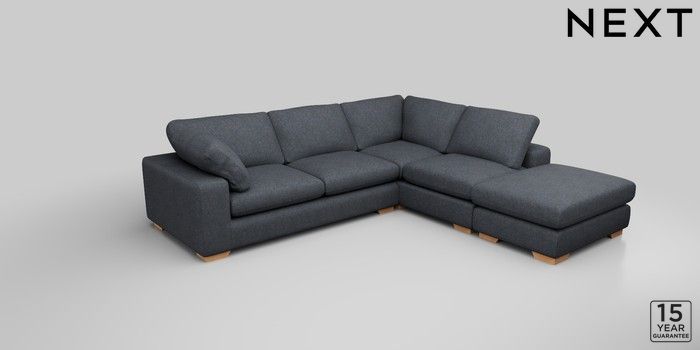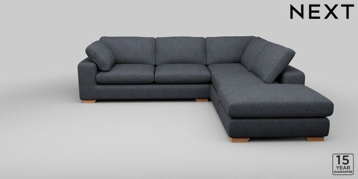 7.2.10 N Premium The Snuggle Grand Large Open End Corner Chaise - Right Hand Tweedy Chenille Navy Blue Large Square Angle - Light | Made Click here to use our website with more accessibility support, for example screen readers