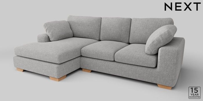 7.2.10 N Premium The Snuggle Grand Large Sofa Chaise - Left Hand Chunky Chenille Light Grey Large Square Angle - Light | Made Click here to use our website with more accessibility support, for example screen readers