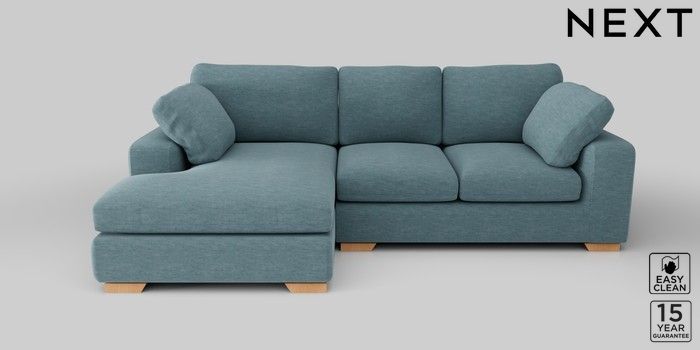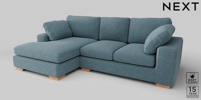 7.2.10 N Premium The Snuggle Grand Large Sofa Chaise - Left Hand Fine Chenille Easy Clean Mid Blue Large Square Angle - Light | Made Click here to use our website with more accessibility support, for example screen readers