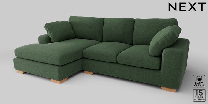 7.2.10 N Premium The Snuggle Grand Large Sofa Chaise - Left Hand Fine Chenille Easy Clean Mid Khaki Green Large Square Angle - Light | Made Click here to use our website with more accessibility support, for example screen readers