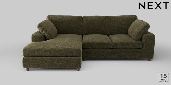 7.2.10 N Premium The Snuggle Grand Large Sofa Chaise - Left Hand Plush Chenille Moss Green Wooden Glide - Mid | Made Click here to use our website with more accessibility support, for example screen readers