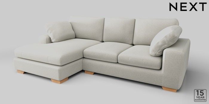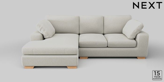 7.2.10 N Premium The Snuggle Grand Large Sofa Chaise - Left Hand Plush Chenille Oyster Large Square Angle - Light | Made Click here to use our website with more accessibility support, for example screen readers