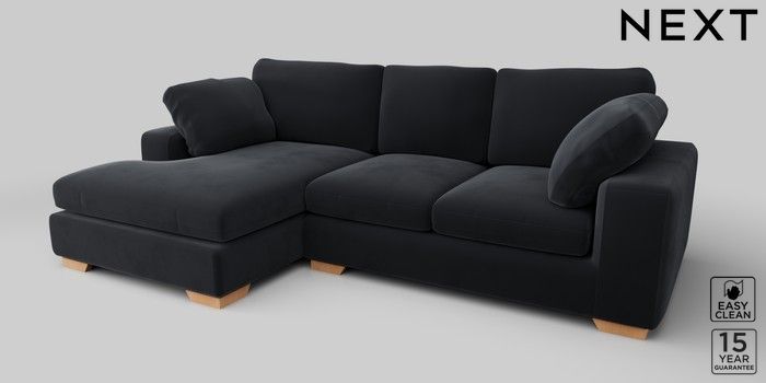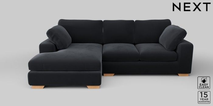 7.2.10 N Premium The Snuggle Grand Large Sofa Chaise - Left Hand Plush Velvet Easy Clean Charcoal Grey Large Square Angle - Light | Made Click here to use our website with more accessibility support, for example screen readers