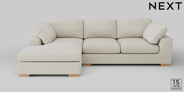 7.2.10 N Premium The Snuggle Grand Large Sofa Chaise - Left Hand Relaxed Linen Look Oyster Large Square Angle - Light | Made Click here to use our website with more accessibility support, for example screen readers