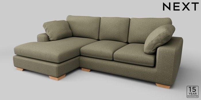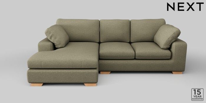 7.2.10 N Premium The Snuggle Grand Large Sofa Chaise - Left Hand Tweedy Chenille Mid Moss Green Large Square Angle - Light | Made Click here to use our website with more accessibility support, for example screen readers