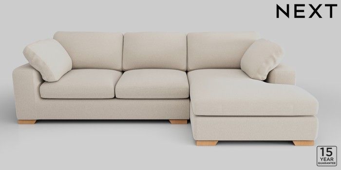 7.2.10 N Premium The Snuggle Grand Large Sofa Chaise - Right Hand Studio Chenille Oyster Large Square Angle - Light | Made Click here to use our website with more accessibility support, for example screen readers