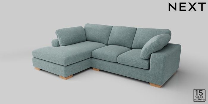 7.2.10 N Premium The Snuggle Grand Medium Corner Chaise - Left Hand Chunky Chenille Light Teal Green Large Square Angle - Light | Made Click here to use our website with more accessibility support, for example screen readers