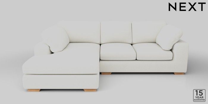 7.2.10 N Premium The Snuggle Grand Medium Corner Chaise - Left Hand Chunky Texture Oyster Large Square Angle - Light | Made Click here to use our website with more accessibility support, for example screen readers