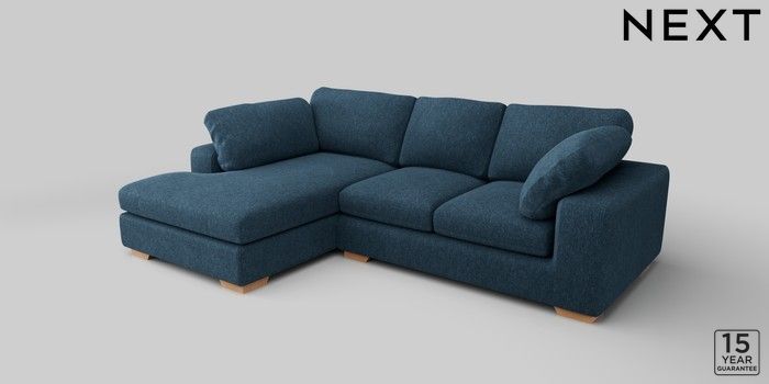 7.2.10 N Premium The Snuggle Grand Medium Corner Chaise - Left Hand Cotswold Chenille Dark Blue Large Square Angle - Light | Made Click here to use our website with more accessibility support, for example screen readers