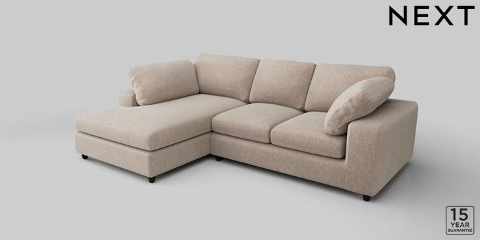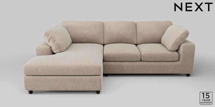 7.2.10 N Premium The Snuggle Grand Medium Corner Chaise - Left Hand Cotswold Chenille Light Natural Wooden Glide - Dark | Made Click here to use our website with more accessibility support, for example screen readers