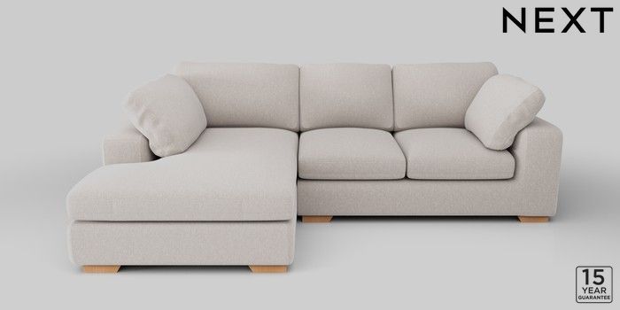 7.2.10 N Premium The Snuggle Grand Medium Corner Chaise - Left Hand Cotswold Chenille Oyster Large Square Angle - Light | Made Click here to use our website with more accessibility support, for example screen readers