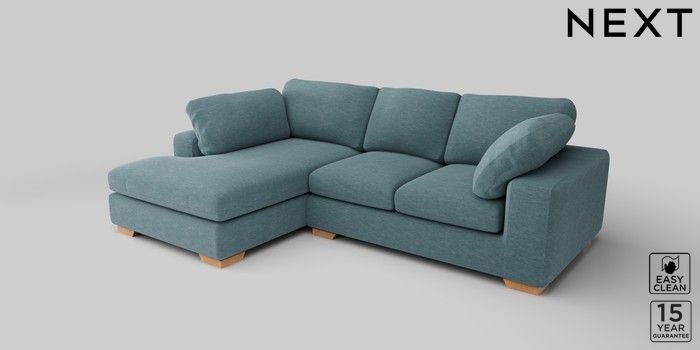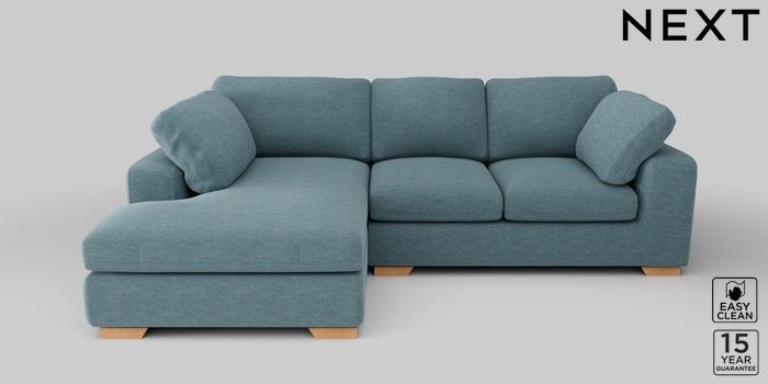 7.2.10 N Premium The Snuggle Grand Medium Corner Chaise - Left Hand Fine Chenille Easy Clean Mid Blue Large Square Angle - Light | Made Click here to use our website with more accessibility support, for example screen readers