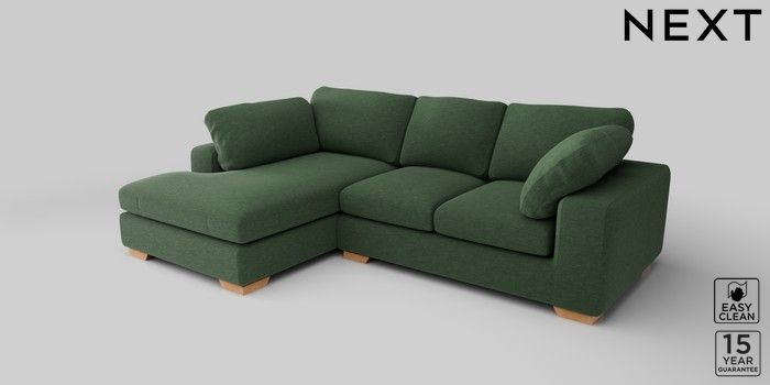7.2.10 N Premium The Snuggle Grand Medium Corner Chaise - Left Hand Fine Chenille Easy Clean Mid Khaki Green Large Square Angle - Light | Made Click here to use our website with more accessibility support, for example screen readers