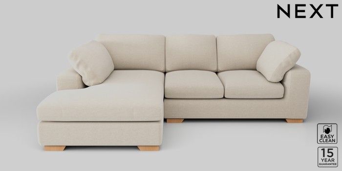 7.2.10 N Premium The Snuggle Grand Medium Corner Chaise - Left Hand Fine Chenille Easy Clean Oyster Large Square Angle - Light | Made Click here to use our website with more accessibility support, for example screen readers