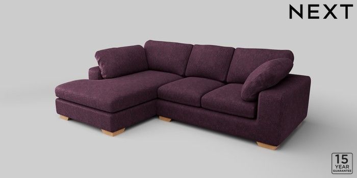 7.2.10 N Premium The Snuggle Grand Medium Corner Chaise - Left Hand Plush Chenille Dark Plum Purple Large Square Angle - Light | Made Click here to use our website with more accessibility support, for example screen readers