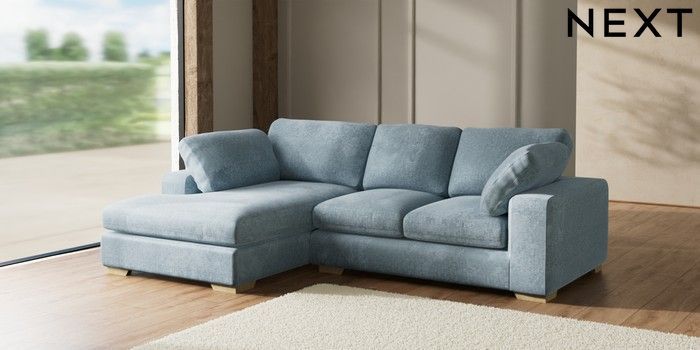 7.2.10 N Premium The Snuggle Grand Medium Corner Chaise - Left Hand Plush Chenille Light Blue Large Square Angle - Light | Made Click here to use our website with more accessibility support, for example screen readers