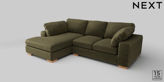 7.2.10 N Premium The Snuggle Grand Medium Corner Chaise - Left Hand Plush Chenille Moss Green Large Square Angle - Light | Made Click here to use our website with more accessibility support, for example screen readers