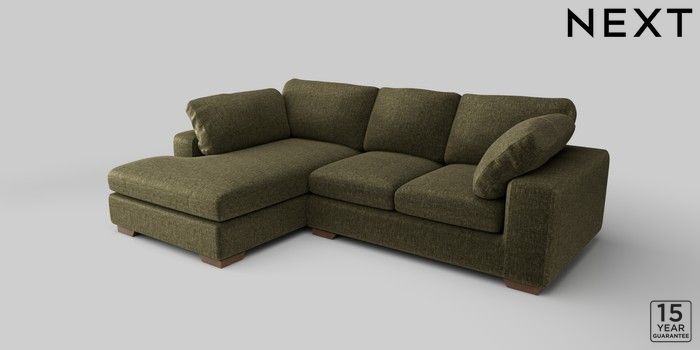 7.2.10 N Premium The Snuggle Grand Medium Corner Chaise - Left Hand Plush Chenille Moss Green Large Square Angle - Mid | Made Click here to use our website with more accessibility support, for example screen readers