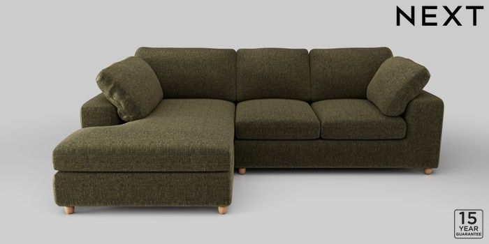 7.2.10 N Premium The Snuggle Grand Medium Corner Chaise - Left Hand Plush Chenille Moss Green Wooden Glide - Light | Made Click here to use our website with more accessibility support, for example screen readers