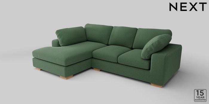 7.2.10 N Premium The Snuggle Grand Medium Corner Chaise - Left Hand Relaxed Linen Look Dark Green Large Square Angle - Light | Made Click here to use our website with more accessibility support, for example screen readers