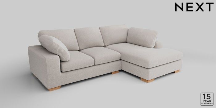 7.2.10 N Premium The Snuggle Grand Medium Corner Chaise - Right Hand Cotswold Chenille Oyster Large Square Angle - Light | Made Click here to use our website with more accessibility support, for example screen readers