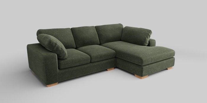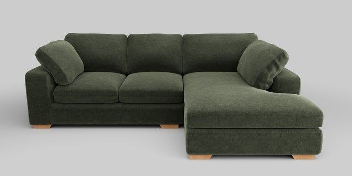 7.2.10 N Premium The Snuggle Grand Medium Corner Chaise - Right Hand Luxe Chenille Mid Green Large Square Angle - Light | Made Click here to use our website with more accessibility support, for example screen readers