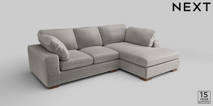 7.2.10 N Premium The Snuggle Grand Medium Corner Chaise - Right Hand Plush Chenille Light Grey Large Square Angle - Mid | Made Click here to use our website with more accessibility support, for example screen readers