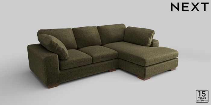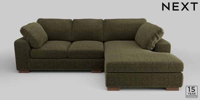 7.2.10 N Premium The Snuggle Grand Medium Corner Chaise - Right Hand Plush Chenille Moss Green Large Square Angle - Mid | Made Click here to use our website with more accessibility support, for example screen readers
