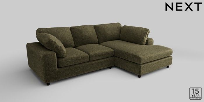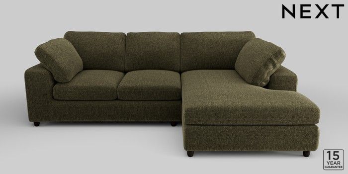 7.2.10 N Premium The Snuggle Grand Medium Corner Chaise - Right Hand Plush Chenille Moss Green Wooden Glide - Dark | Made Click here to use our website with more accessibility support, for example screen readers