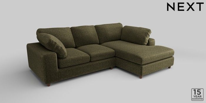7.2.10 N Premium The Snuggle Grand Medium Corner Chaise - Right Hand Plush Chenille Moss Green Wooden Glide - Mid | Made Click here to use our website with more accessibility support, for example screen readers