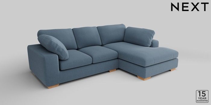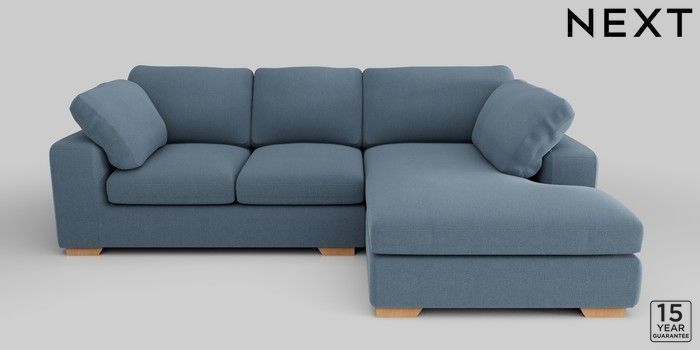7.2.10 N Premium The Snuggle Grand Medium Corner Chaise - Right Hand Relaxed Linen Look Mid Blue Large Square Angle - Light | Made Click here to use our website with more accessibility support, for example screen readers