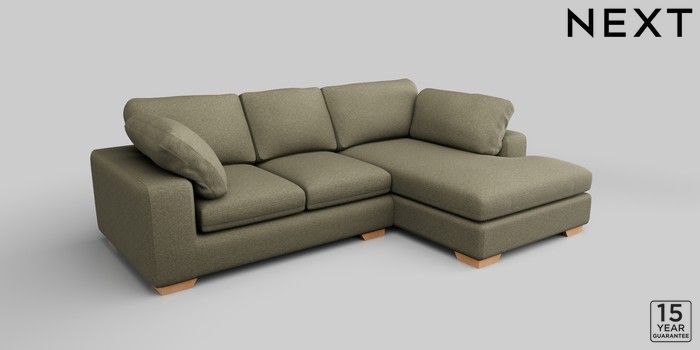 7.2.10 N Premium The Snuggle Grand Medium Corner Chaise - Right Hand Tweedy Chenille Mid Moss Green Large Square Angle - Light | Made Click here to use our website with more accessibility support, for example screen readers