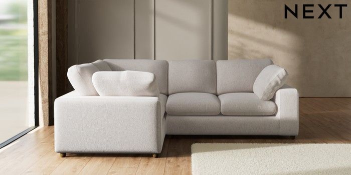 7.2.10 N Premium The Snuggle Grand Medium Corner Sofa - Left Hand Multi Weave Oyster Wooden Glide - Mid | Made Click here to use our website with more accessibility support, for example screen readers